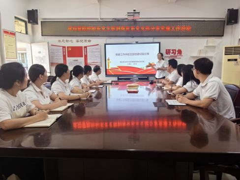 在分享会上,智能控制系党支部书记易铭、支委陈廷艳、欧幸福三位同志结合第三批全国党建工作样板支部创建情况进行了经验分享。他们重点介绍了支部在“七个有力”方面的主要措施与成效,双方还就样板支部中期检查与验收等相关事项进行了交流。